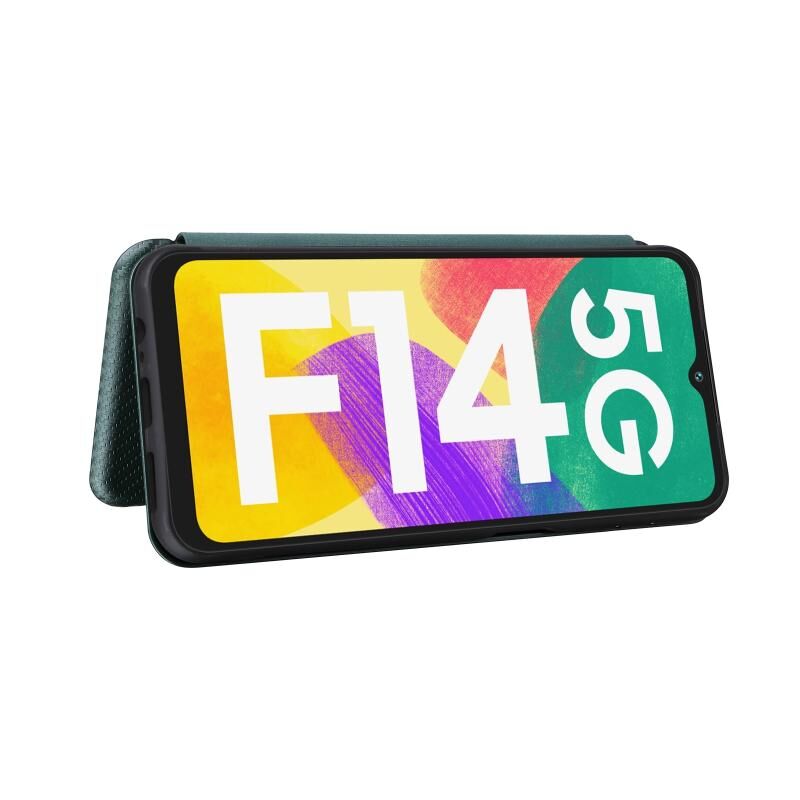 Για Samsung Galaxy F14 Carbon Fiber Texture Flip δέρμα τηλέφωνο υπόθεση (πράσινο)