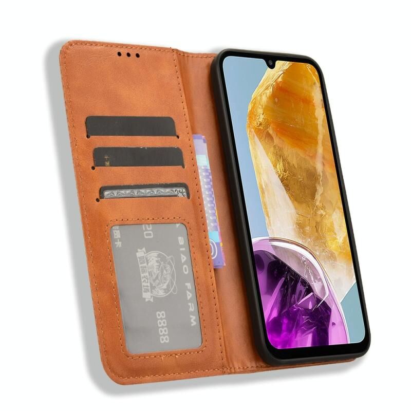 Για Samsung Galaxy F15 / M15 5G Μαγνητική πόρπη ρετρό υφή δερμάτινη θήκη τηλεφώνου (Καφέ)