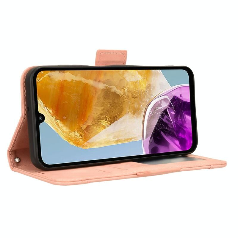 Για το Samsung Galaxy F15 / M15 5G δέρμα αίσθηση μοσχάρι υφή κάρτα υποδοχές δερμάτινη θήκη τηλεφώνου (ροζ)