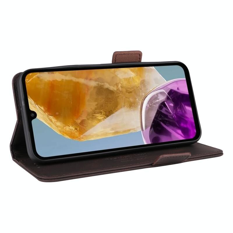 Για Samsung Galaxy F15 / M15 Μαγνητικό κούμπωμα Δερμάτινη θήκη τηλεφώνου (καφέ)