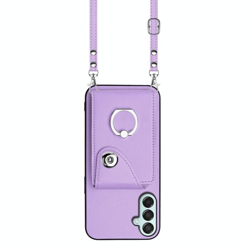 Για Samsung Galaxy F15 / M15 Οργανική κάρτα τσάντα τσάντα δαχτυλίδι κάτοχος υπόθεση τηλεφώνου με μακρύ κορδόνι (μωβ)