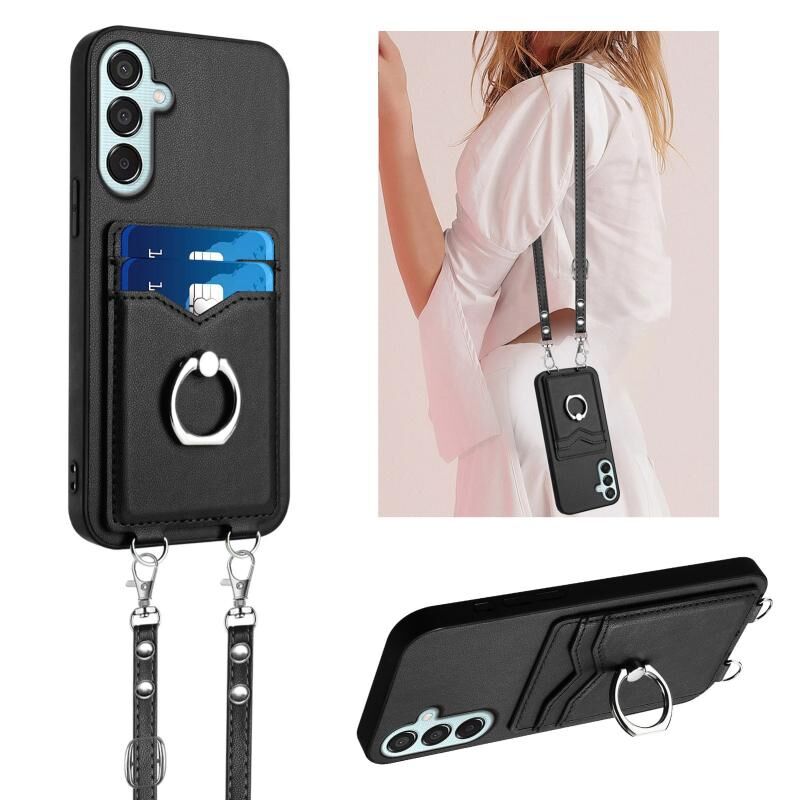 Για Samsung Galaxy F15 / M15 R20 Crossbody σχοινί δαχτυλίδι κάτοχος κάρτας υπόθεση τηλεφώνου (Μαύρο)