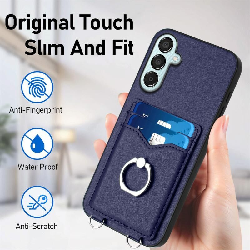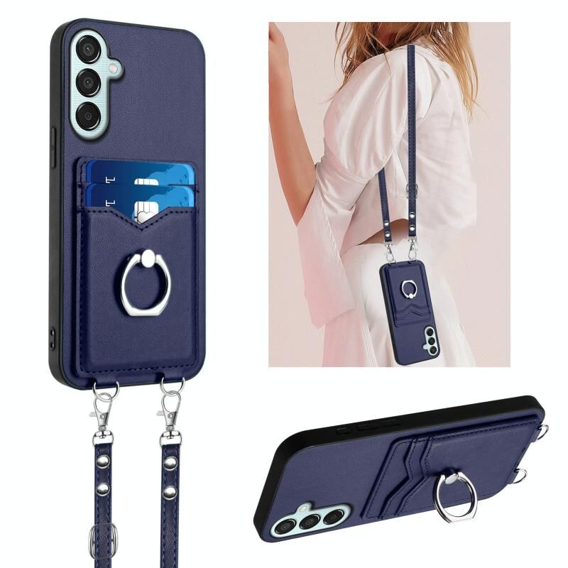 Για Samsung Galaxy F15 / M15 R20 Crossbody σχοινί δαχτυλίδι κάτοχος κάρτας υπόθεση τηλεφώνου (Μπλε)