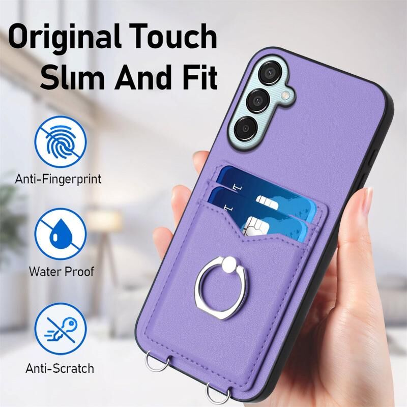 Για Samsung Galaxy F15 / M15 R20 Crossbody σχοινί δαχτυλίδι κάτοχος κάρτας υπόθεση τηλεφώνου (Μωβ)