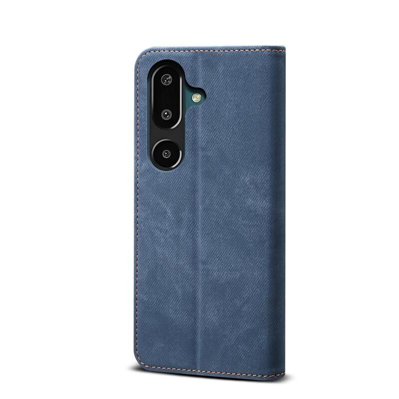 Θήκη δέρματος οριζόντιας αναδίπλωσης με υφή denim για Samsung Galaxy F16 5G (Μπλε)