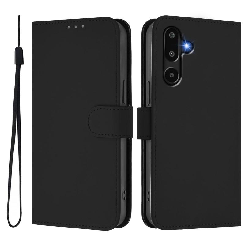 For Samsung Galaxy F16 5G Global Skin Feel Solid Color Leather Phone Case with Lanyard(Black)