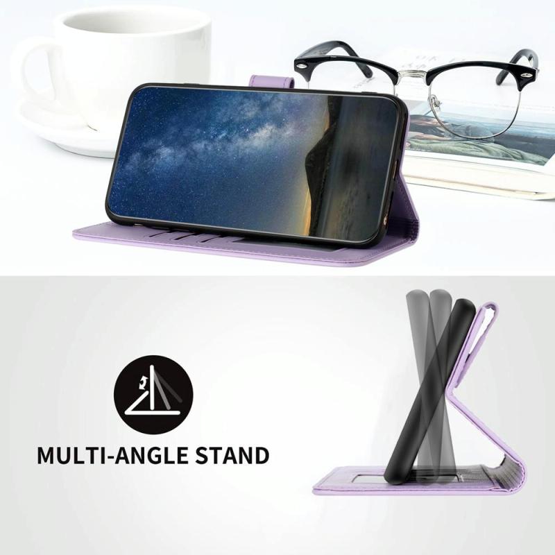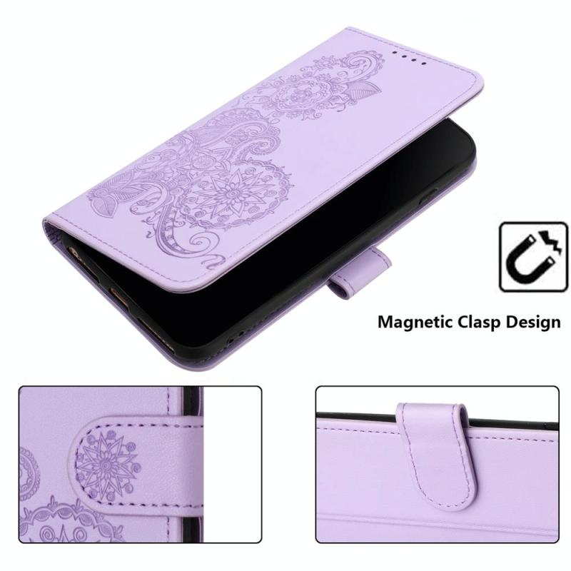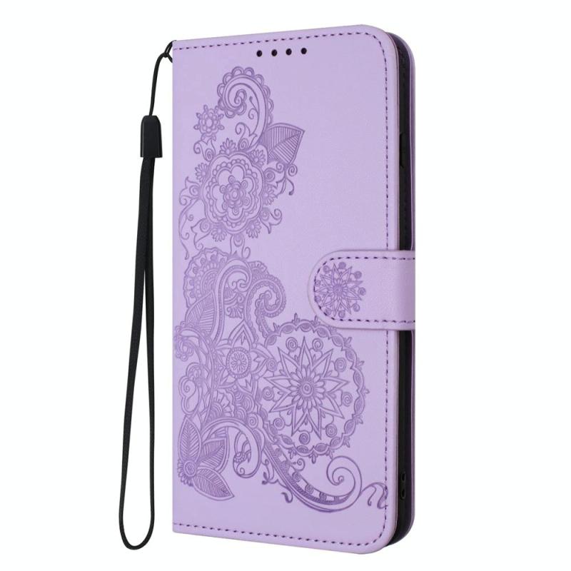 Θήκη δερμάτινη flip με ανάγλυφο λουλούδι Datura για Samsung Galaxy F16 5G / M16 5G (Μωβ)