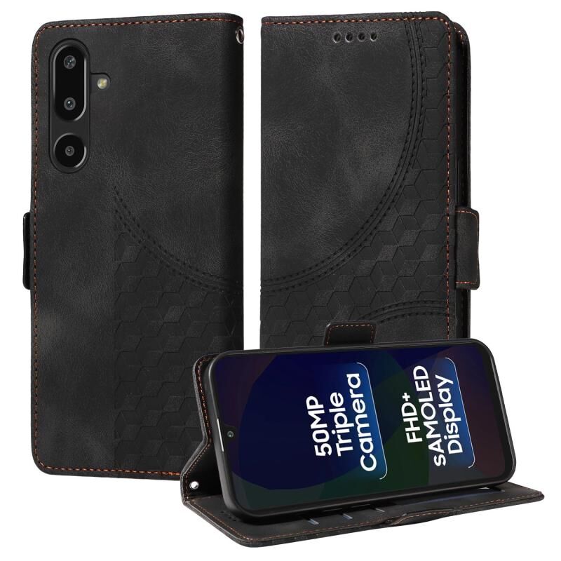 Θήκη τηλεφώνου από δέρμα με ανάγλυφο ρόμβο και αστρικό σχέδιο για Samsung Galaxy F16 5G / M16 5G (Μπλε)