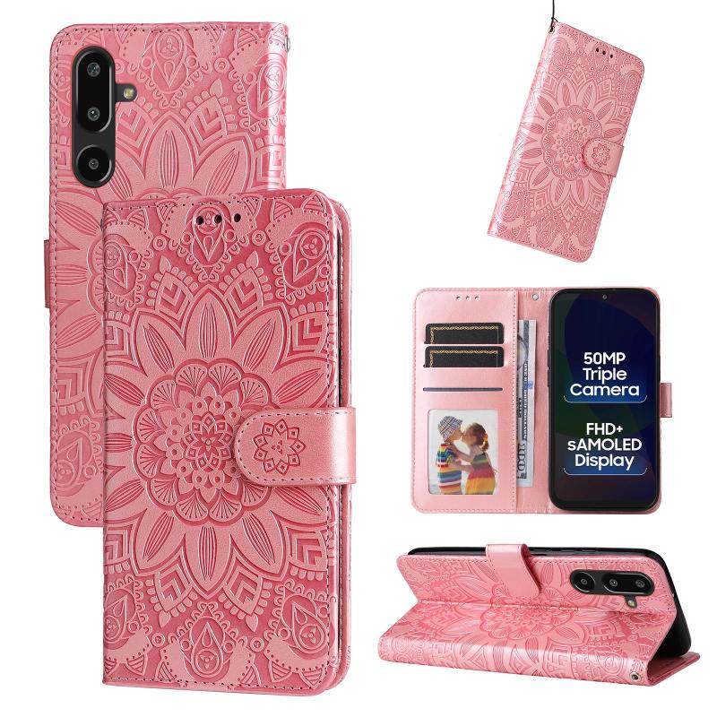 For Samsung Galaxy F16 5G / M16 5G Embossed Sunflower Leather Phone Case(Rose Gold)