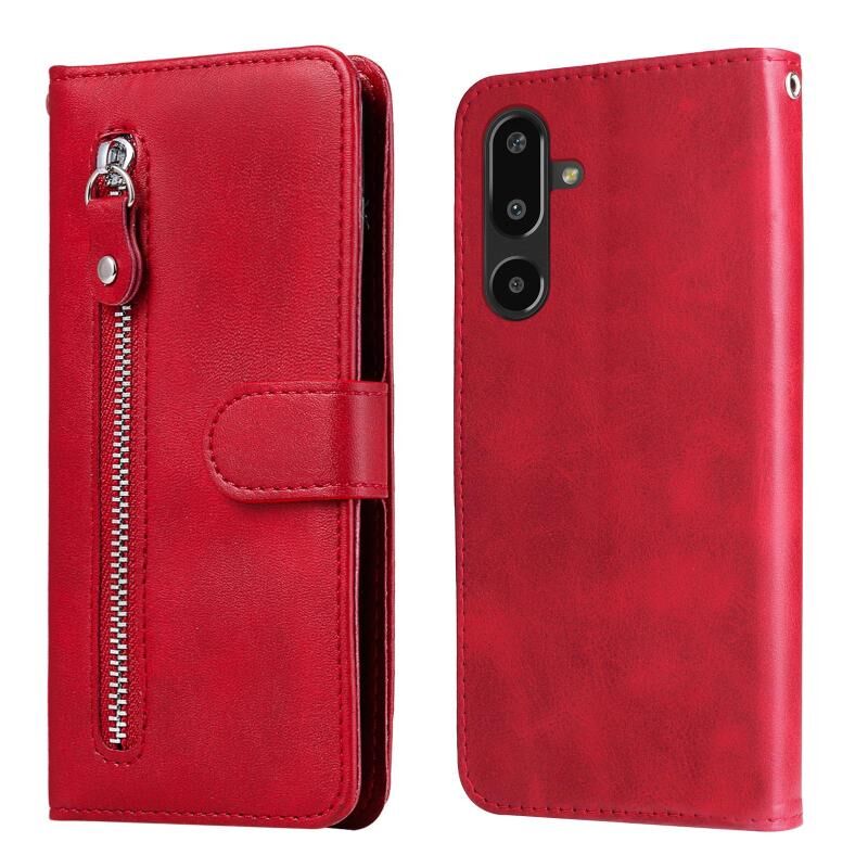 Θήκη τηλεφώνου Samsung Galaxy F16 5G / M16 5G, δερμάτινη με φερμουάρ και υφή μοσχαριού (Κόκκινο)
