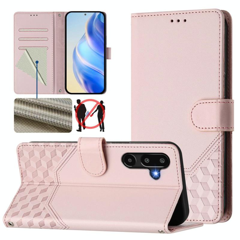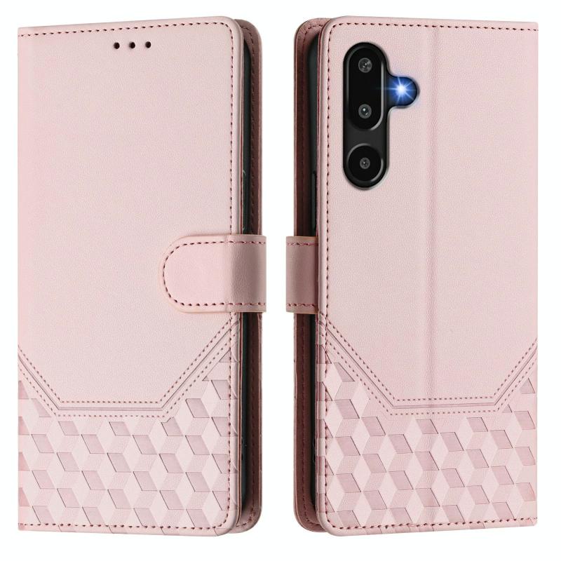 Θήκη τηλεφώνου Samsung Galaxy F16 5G / M16 5G Global με ανάγλυφο κυψελωτό σχέδιο RFID από δέρμα (ρόζ)