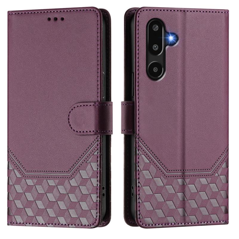 Θήκη τηλεφώνου Samsung Galaxy F16 5G / M16 5G Global με ανάγλυφο κηρήθρας από δέρμα RFID (Βιολετί)