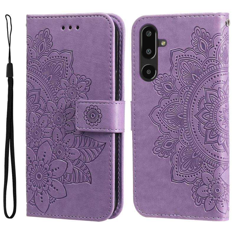 For Samsung Galaxy F16 5G / M16 5G Seven-petal Flowers Embossing Leather Phone Case(Light Purple)