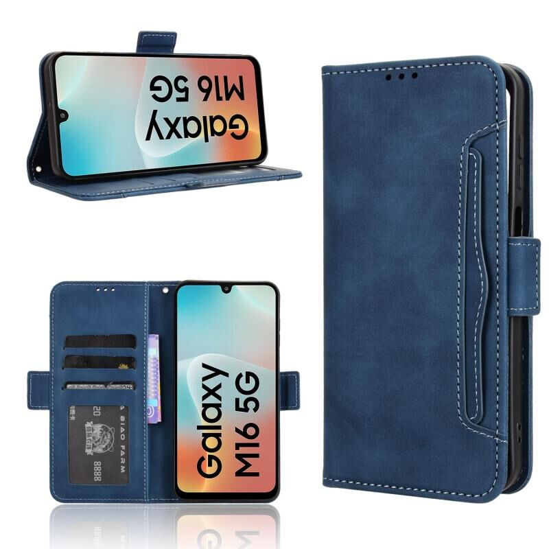 Θήκη τηλεφώνου Samsung Galaxy F16 5G / M16 5G από δέρμα με υφή μοσχαριού, αίσθηση δέρματος, με θήκες για κάρτες (Ροζ)