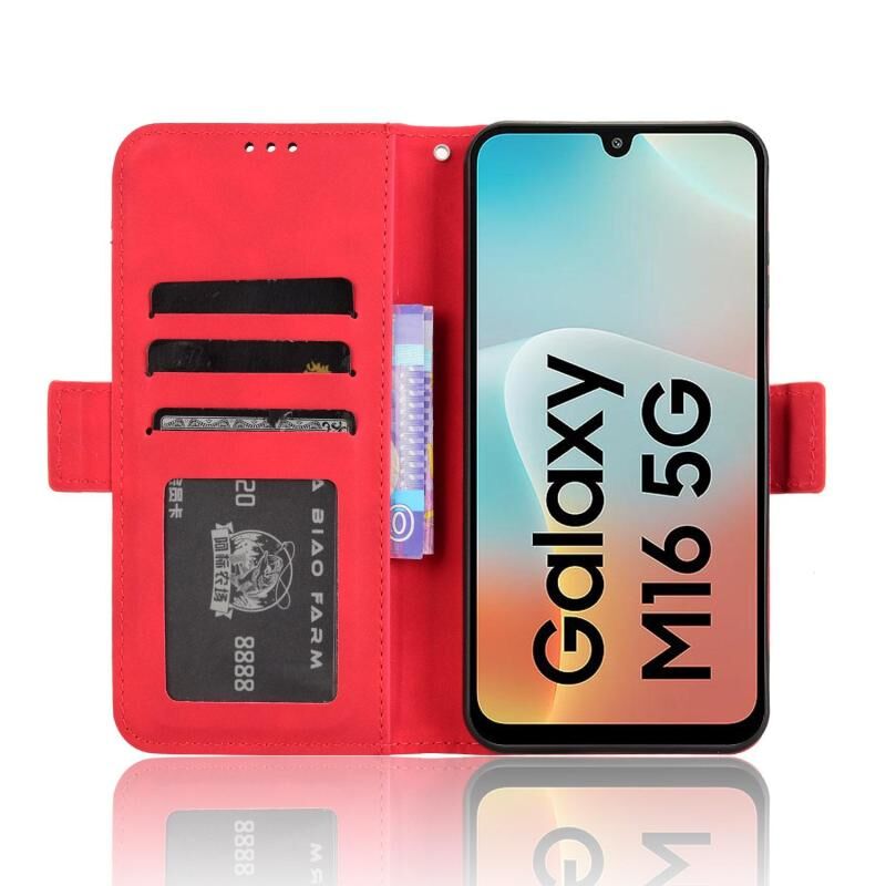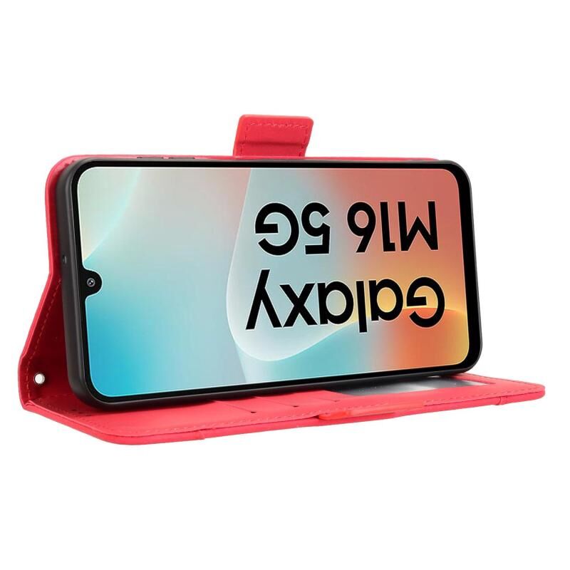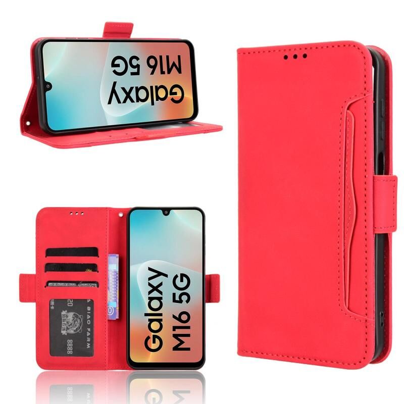 Θήκη τηλεφώνου Samsung Galaxy F16 5G / M16 5G από δέρμα με υφή μοσχαριού, αίσθηση δέρματος, με θήκες για κάρτες (Κόκκινο)