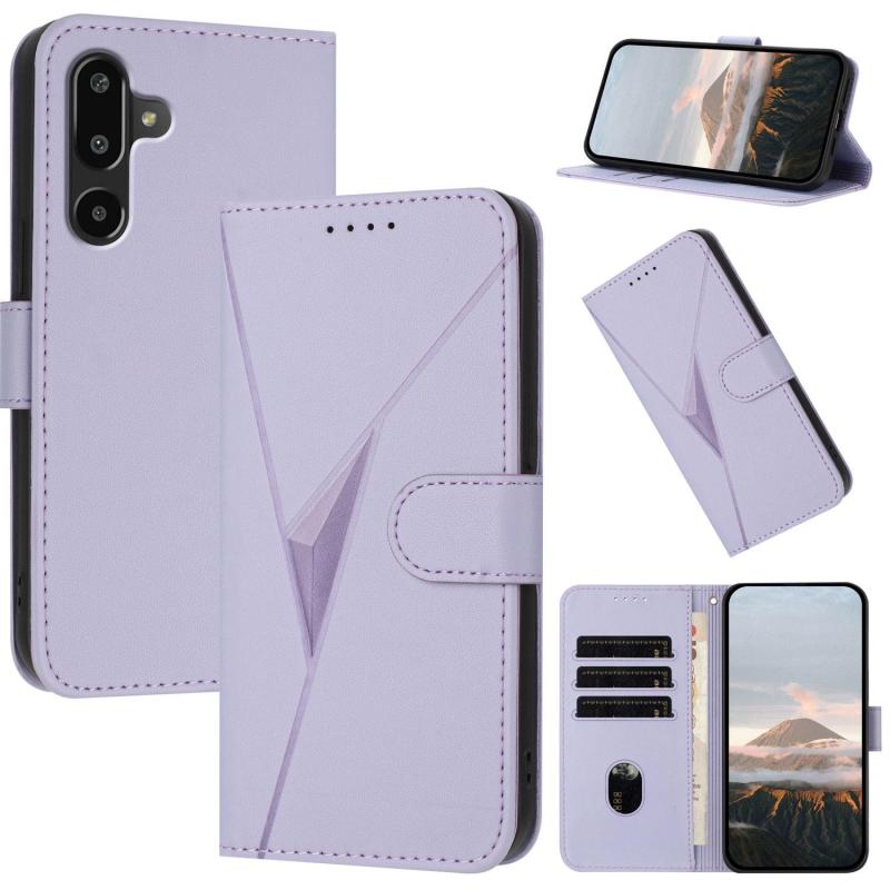 For Samsung Galaxy F16 5G / M16 5G Triangle Pattern Buckle Clasp Leather Phone Case(Light Purple)