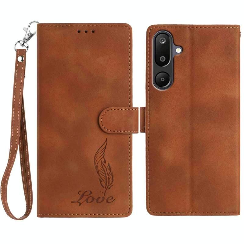 For Samsung Galaxy F16 5G Skin Feel Embossed Feather Leather Phone Case(Brown)
