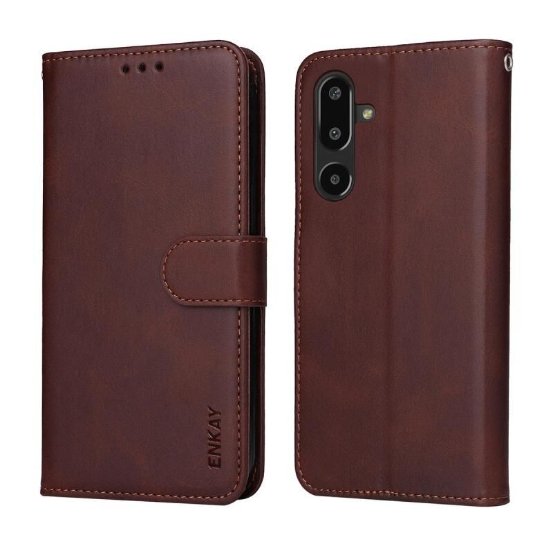 Θήκη κινητού τηλεφώνου ENKAY για Samsung Galaxy F16 / M16, δερμάτινη με υφή μοσχαριού και θήκη για κάρτες (Ροζ) (ENKAY) με προστατευτική μεμβράνη οθόνης. (Καφέ)