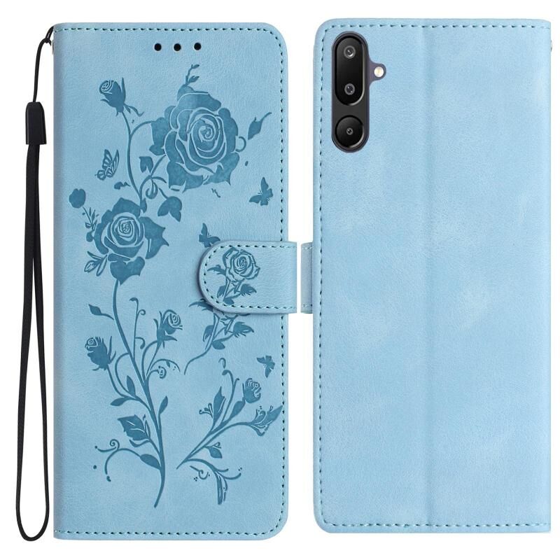 For Samsung Galaxy F16 Rose Flower Embossing Pattern Leather Phone Case(Sky Blue)