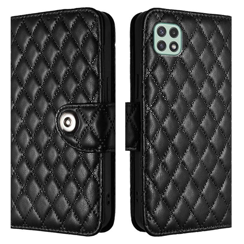 Για Samsung Galaxy F42 5G Rhombic Texture Flip δερμάτινη θήκη τηλεφώνου με κορδόνι (μαύρο)