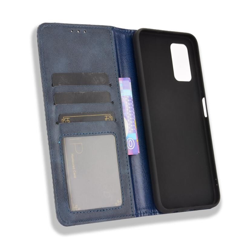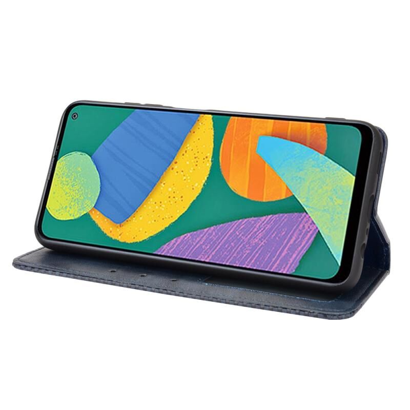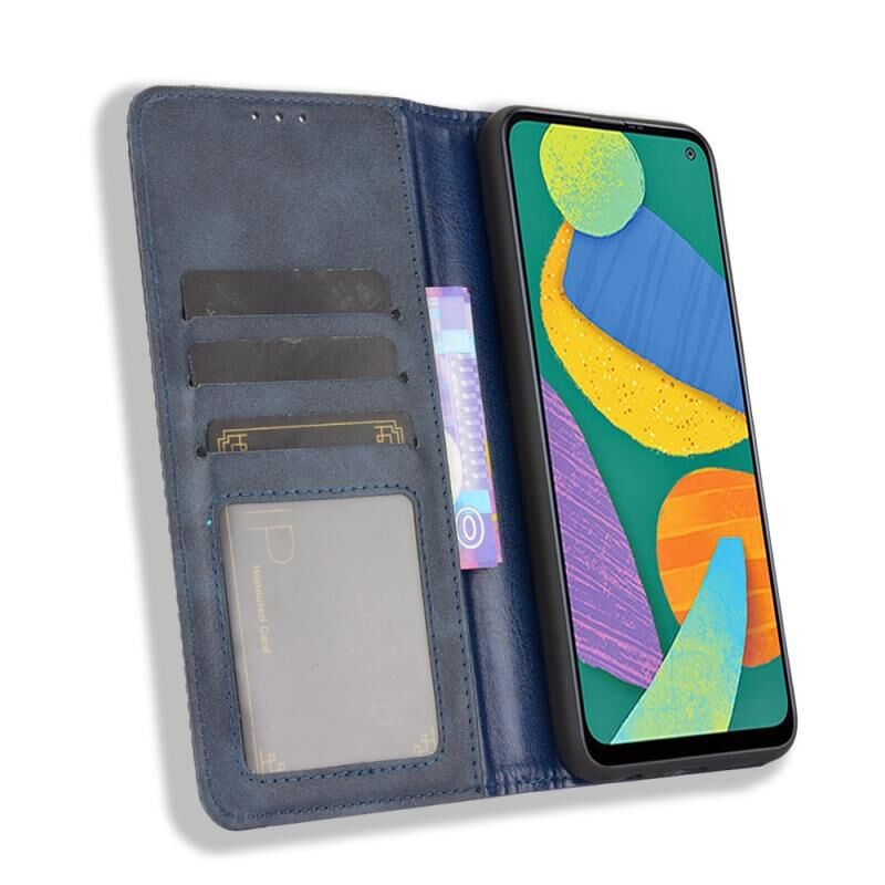 Για Samsung Galaxy F52 5G Μαγνητική πόρπη Retro Crazy Horse Υφή οριζόντια Flip δερμάτινη θήκη με θήκη & υποδοχές για κάρτες & πλαίσιο φωτογραφιών (μπλε)