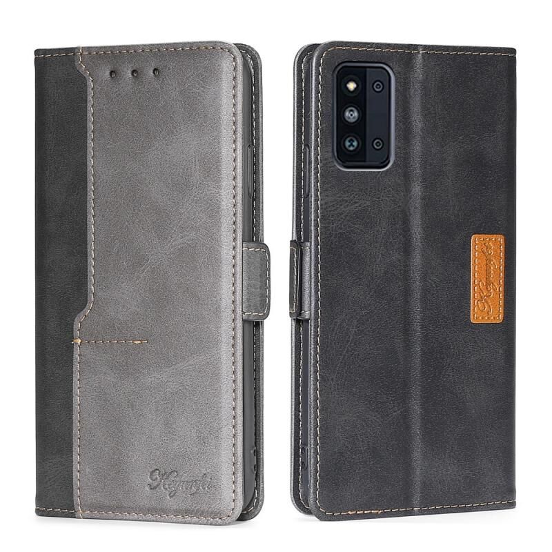 Για Samsung Galaxy F52 5G Retro υφή αντίθεση χρώμα πόρπη οριζόντια Flip δερμάτινη θήκη με κάτοχο (μαύρο + γκρι)
