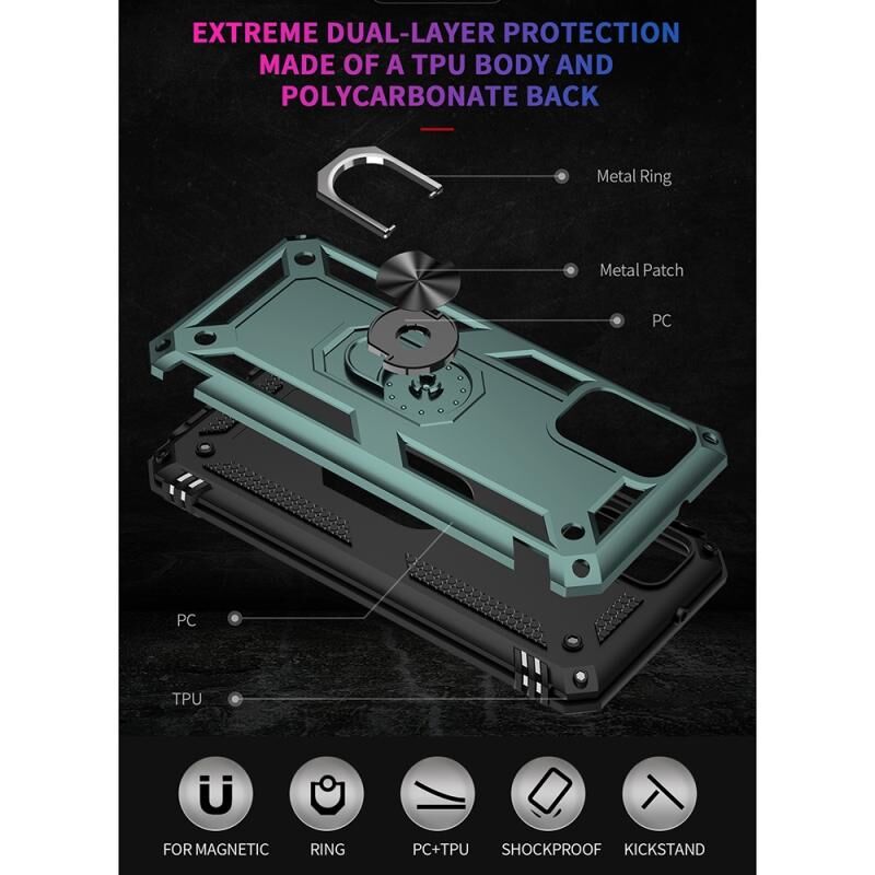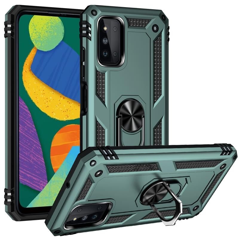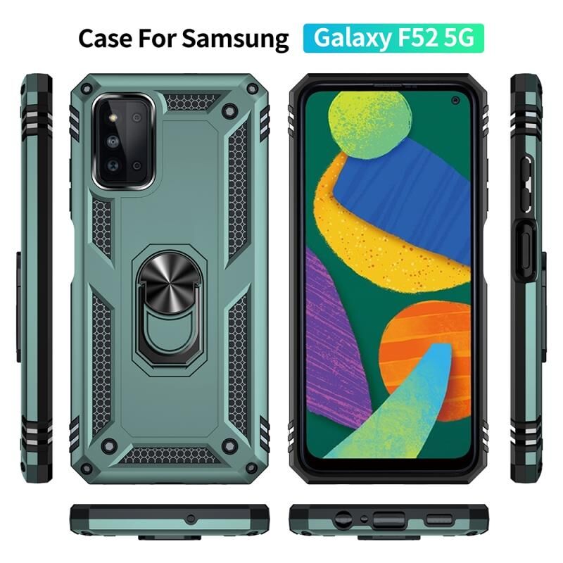 Για το Samsung Galaxy F52 5G Shockproof TPU + PC Προστατευτική θήκη με 360 μοίρες περιστρεφόμενη θήκη (σκούρο πράσινο)