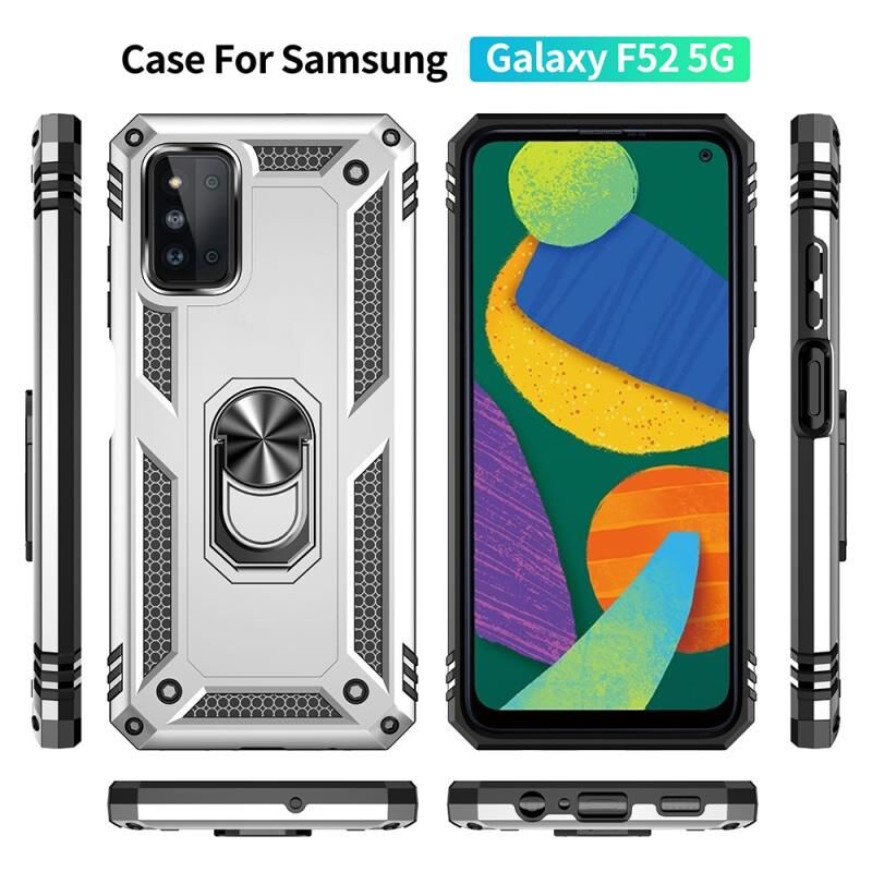 Για το Samsung Galaxy F52 5G Αδιάβροχη θήκη TPU + PC Προστατευτική θήκη με περιστρεφόμενη θήκη 360 μοιρών (ασημί)