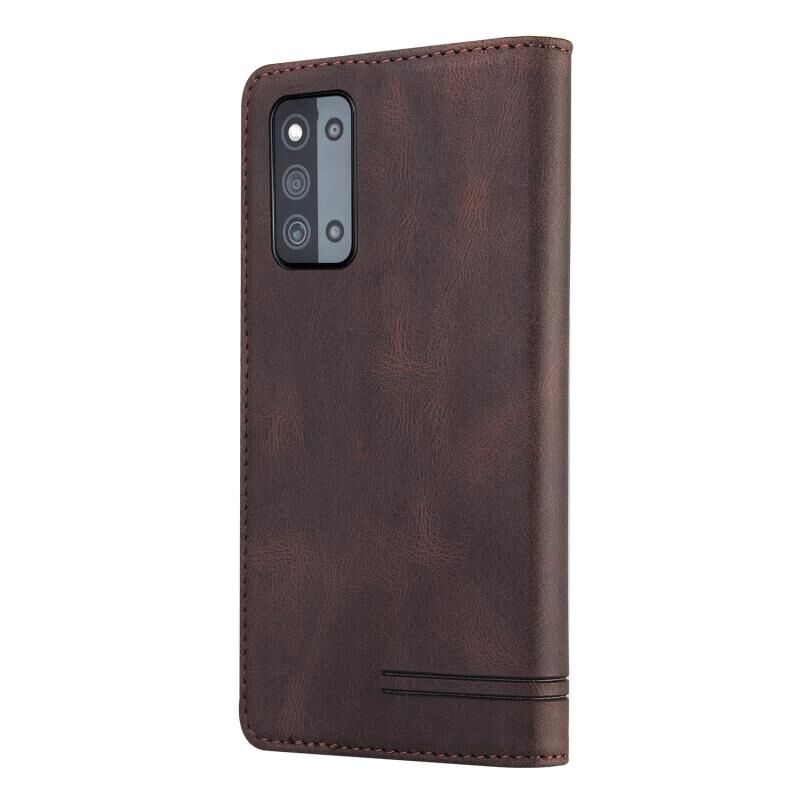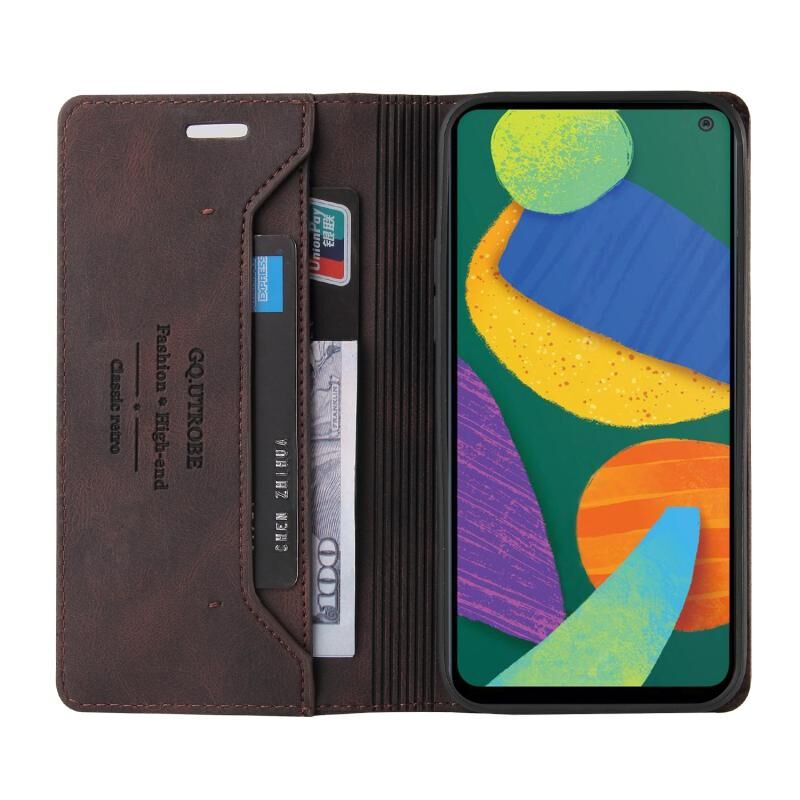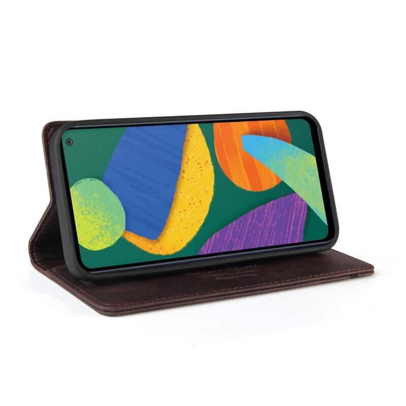 Για το Samsung Galaxy F52 5G Skin Feel Anti-theft Brush Οριζόντια Flip δερμάτινη θήκη με θήκη & υποδοχές καρτών & πορτοφόλι (καφέ)