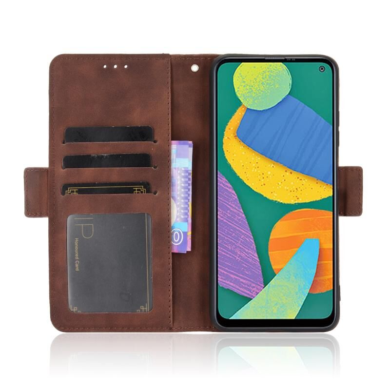 Για Samsung Galaxy F52 5G δέρμα αίσθηση μοσχάρι μοτίβο οριζόντια Flip δερμάτινη θήκη με υποδοχή & υποδοχές για κάρτες & πλαίσιο φωτογραφιών (καφέ)