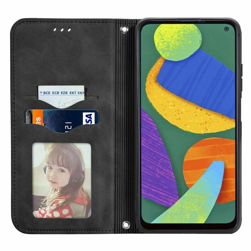 Για Samsung Galaxy F52 Retro Skin Feel Business μαγνητική οριζόντια Flip δερμάτινη θήκη με υποδοχές για κάρτες & πορτοφόλι & κορνίζα φωτογραφιών (Μαύρο)