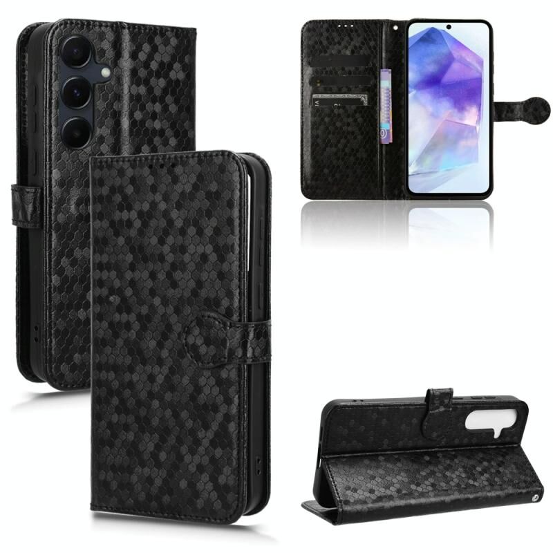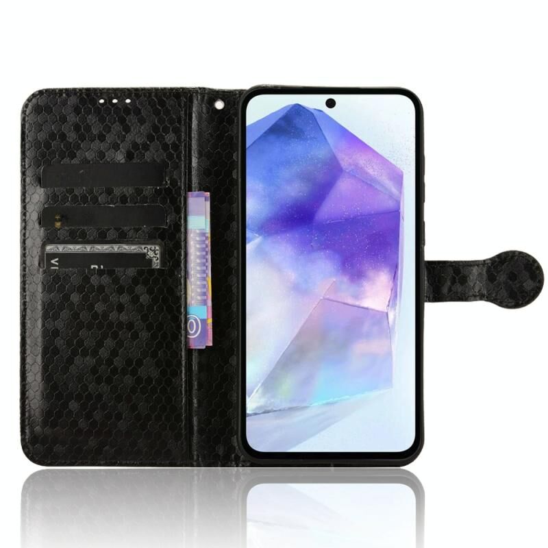 Θήκη τηλεφώνου από δέρμα με υφή κυψελωτού δικτύου για Samsung Galaxy F55 5G / M55 5G / C55 5G (Μαύρο)