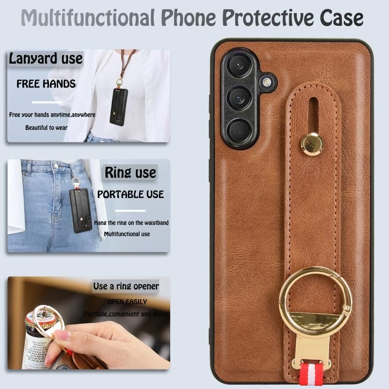 Για Samsung Galaxy F55 / M55 / C55 5G Wristband δέρμα πίσω υπόθεση τηλεφώνου (καφέ)
