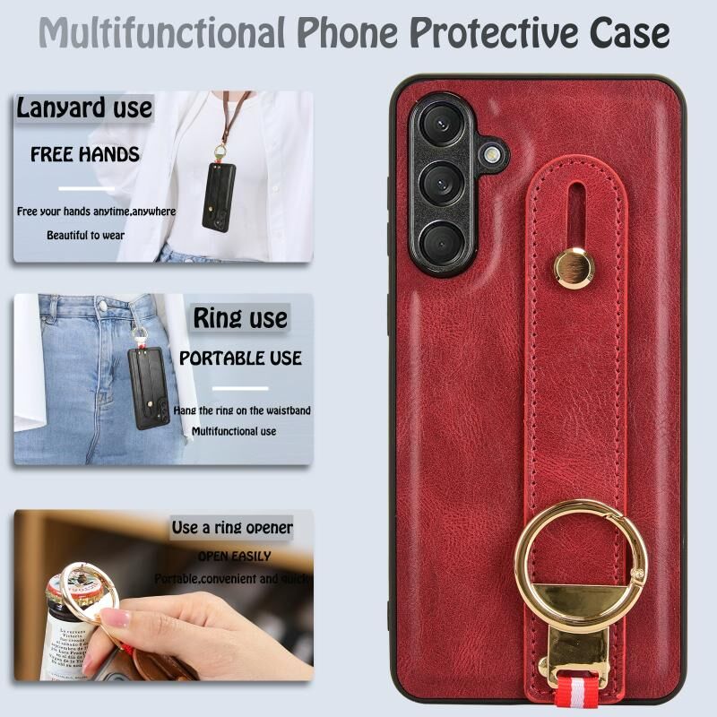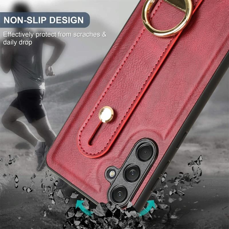 Για Samsung Galaxy F55 / M55 / C55 5G Wristband δέρμα πίσω υπόθεση τηλεφώνου (κόκκινο)