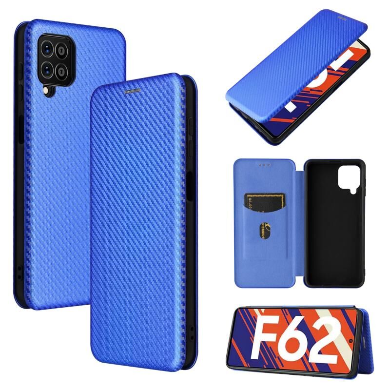 Για Samsung Galaxy F62 Carbon Fiber υφή οριζόντια Flip TPU + PC + PU δέρμα υπόθεση με υποδοχή κάρτας (Μπλε)