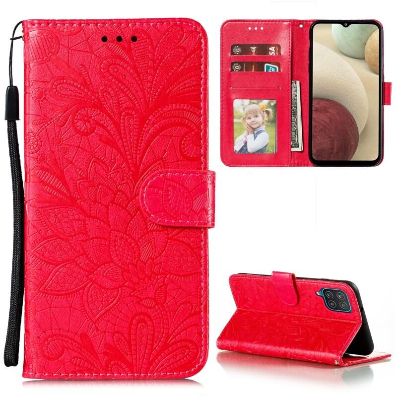 Για Samsung Galaxy F62 / M62 Lace Flower ανάγλυφο μοτίβο οριζόντια Flip δερμάτινη θήκη με θήκη & υποδοχές για κάρτες & πορτοφόλι & πλαίσιο φωτογραφιών (Κόκκινο)