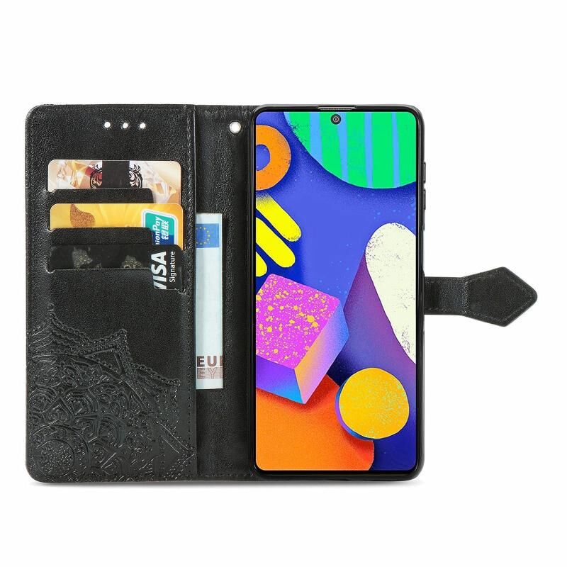 Για Samsung Galaxy F62 / M62 Mandala ανάγλυφο μοτίβο οριζόντια Flip δερμάτινη θήκη με θήκη & υποδοχές για κάρτες & πορτοφόλι & κορδόνι (Μαύρο)