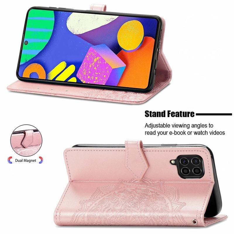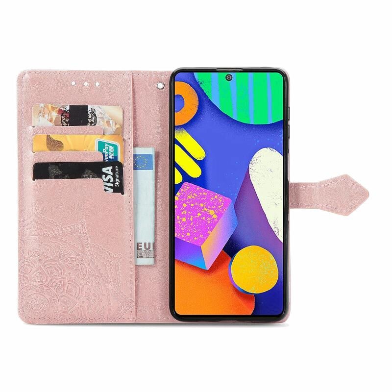 Για Samsung Galaxy F62 / M62 Mandala ανάγλυφο μοτίβο οριζόντια Flip δερμάτινη θήκη με θήκη & υποδοχές για κάρτες & πορτοφόλι & κορδόνι (Rose Gold)
