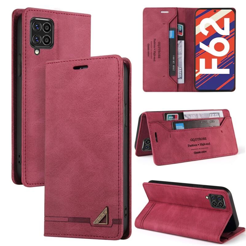 Για Samsung Galaxy F62 / M62 Skin Feel Anti-theft Brush Οριζόντια Flip δερμάτινη θήκη με θήκη & υποδοχές καρτών & πορτοφόλι (κόκκινο κρασί)