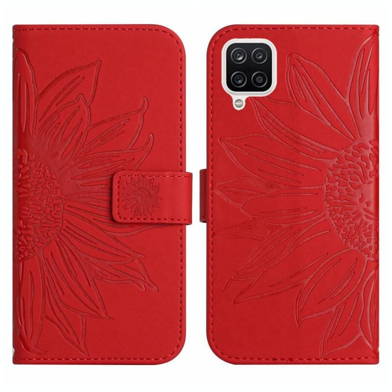 Για Samsung Galaxy F62 / M62 Skin Feel Sun Flower μοτίβο Flip δέρμα τηλέφωνο υπόθεση με κορδόνι (κόκκινο)