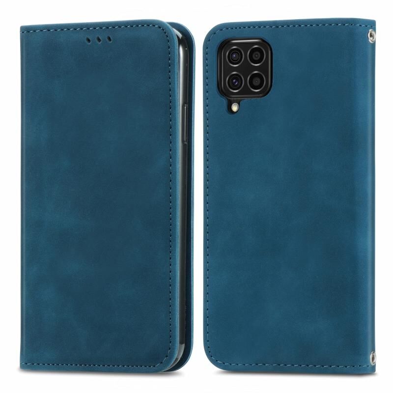 Για Samsung Galaxy F62 Ρετρό δέρμα αίσθηση Business μαγνητική οριζόντια Flip δερμάτινη θήκη με κάτοχο & υποδοχές καρτών & πορτοφόλι & πλαίσιο φωτογραφιών (Μπλε)