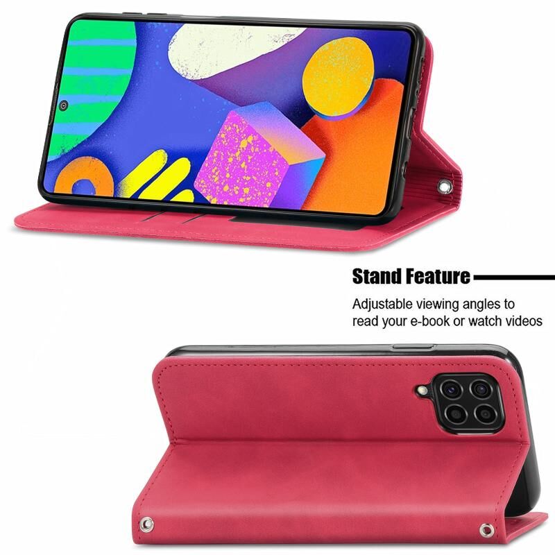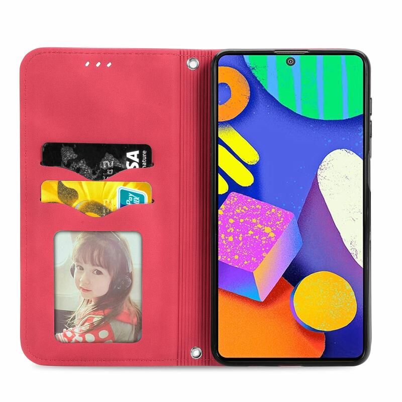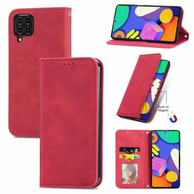 Για Samsung Galaxy F62 Retro Skin Feel Business μαγνητική οριζόντια Flip δερμάτινη θήκη με υποδοχές για κάρτες & πορτοφόλι & πλαίσιο φωτογραφιών (Κόκκινο)