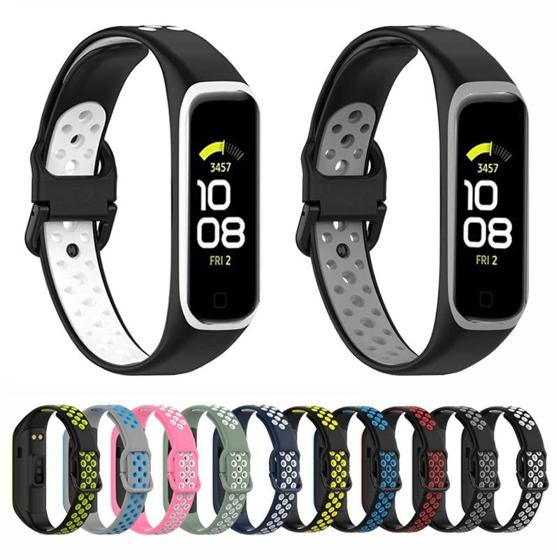 For Samsung Galaxy Fit 2 SM-R220 Two-color Silicone Watch Band(Black Blue)