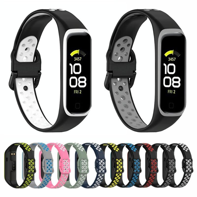 For Samsung Galaxy Fit 2 SM-R220 Two-color Silicone Watch Band(Light Green White)