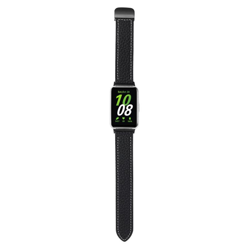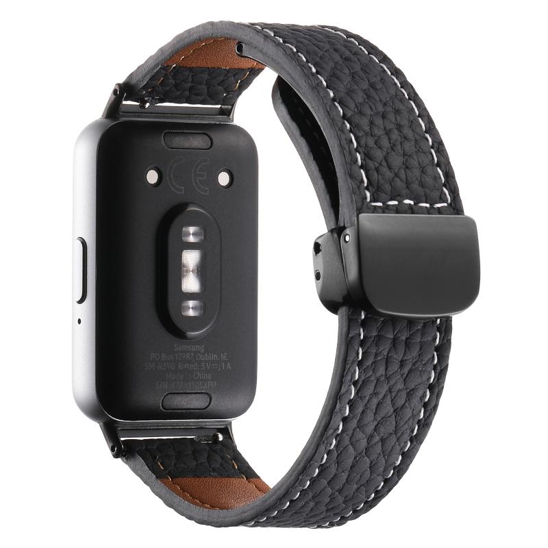 For Samsung Galaxy Fit 3 Litchi Texture Magnetic Black Buckle Leather Watch Band(Black)