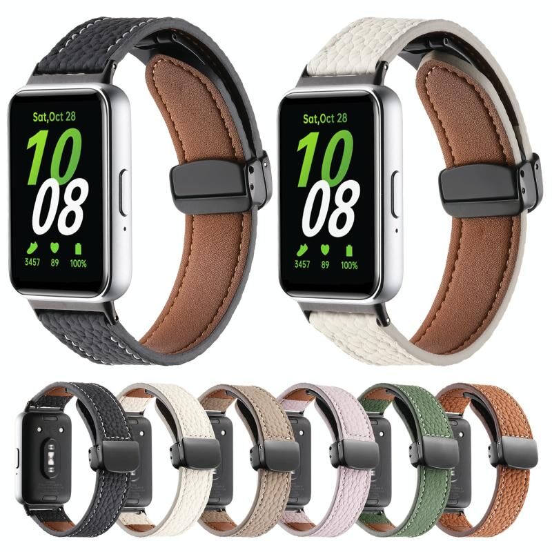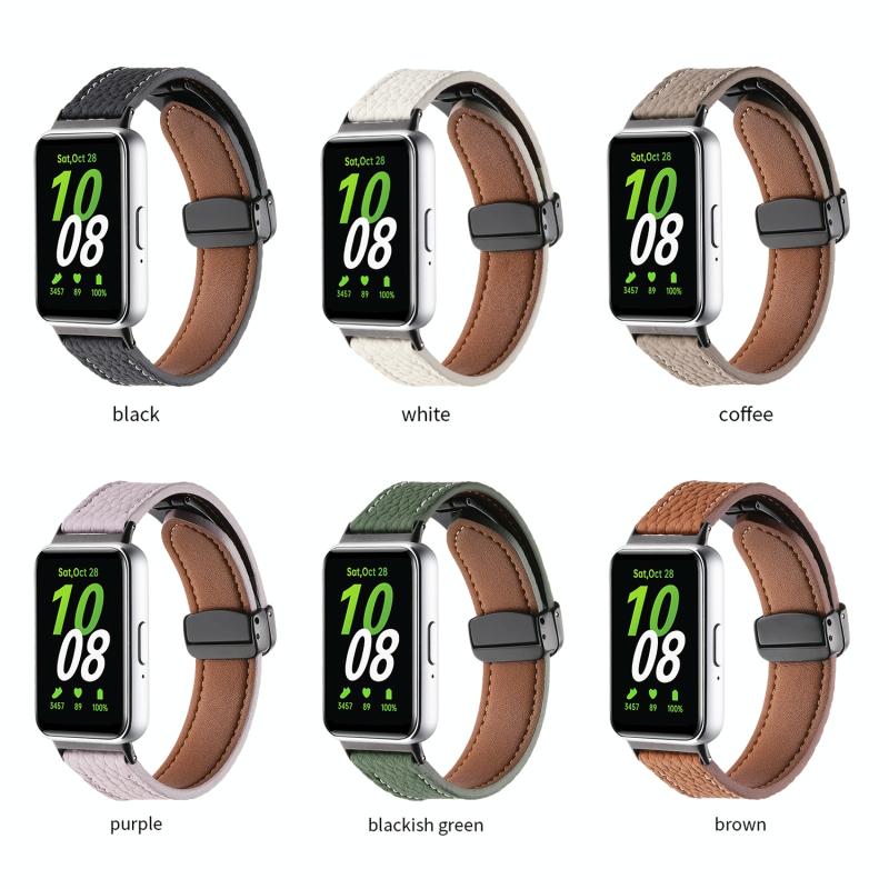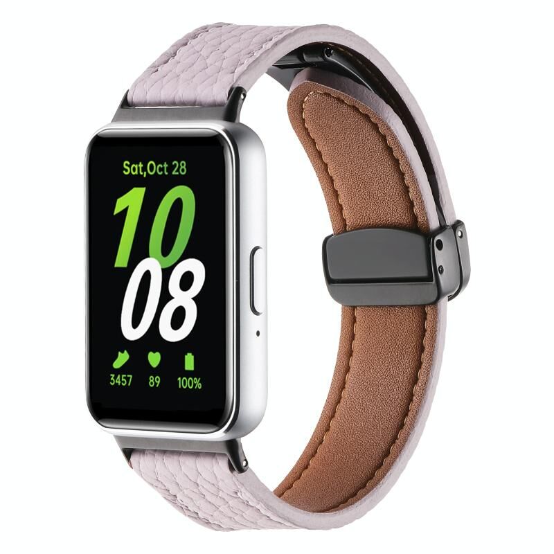For Samsung Galaxy Fit 3 Litchi Texture Magnetic Black Buckle Leather Watch Band(Purple)