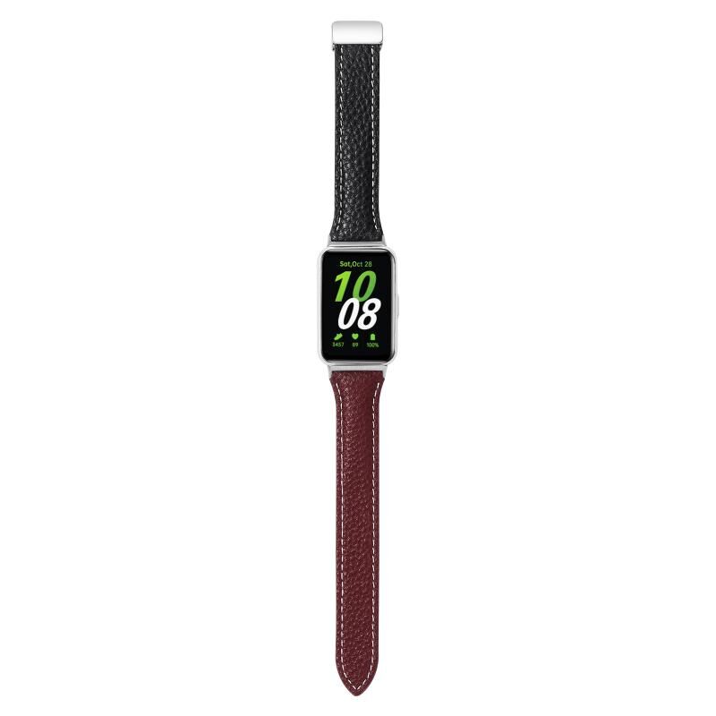 For Samsung Galaxy Fit 3 Litchi Texture Magnetic Buckle Slim Leather Watch Band(Black+Rose Gold)
