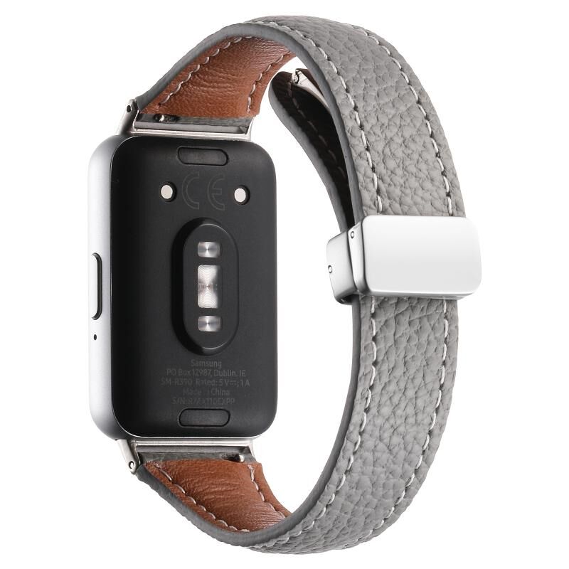 For Samsung Galaxy Fit 3 Litchi Texture Magnetic Buckle Slim Leather Watch Band(Grey)