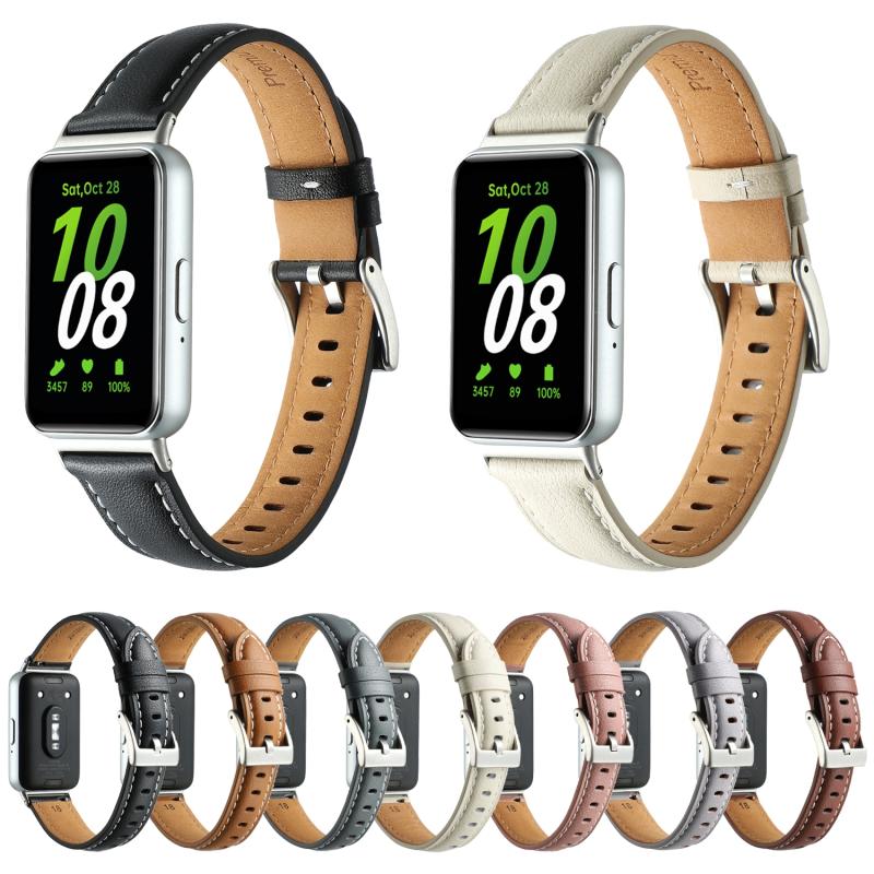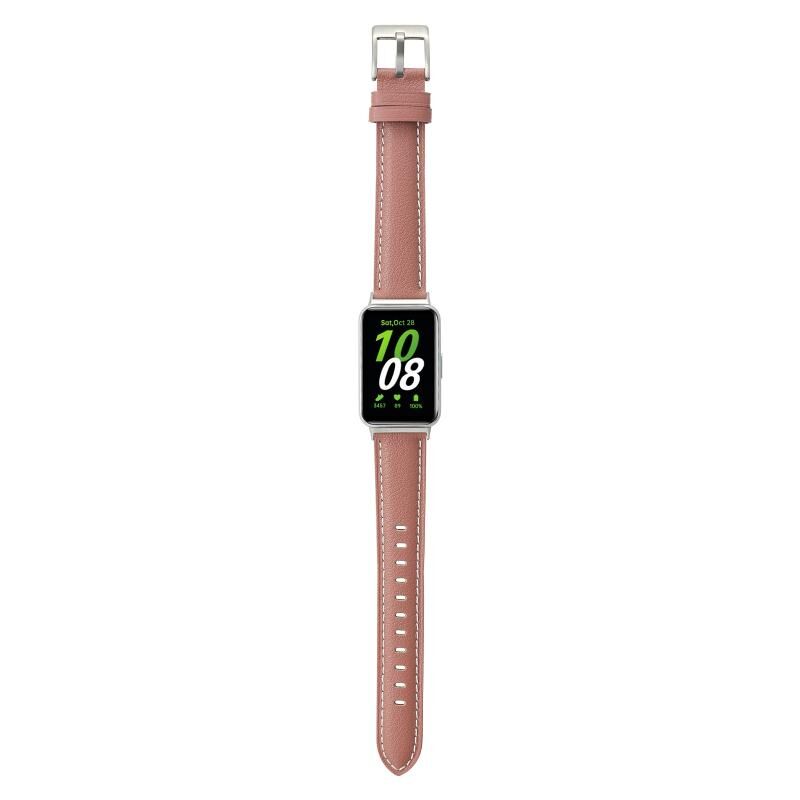 For Samsung Galaxy Fit 3 Pointed Tail Genuine Leather Watch Band(Dark Pink)