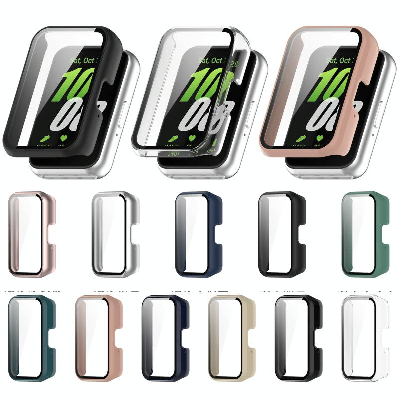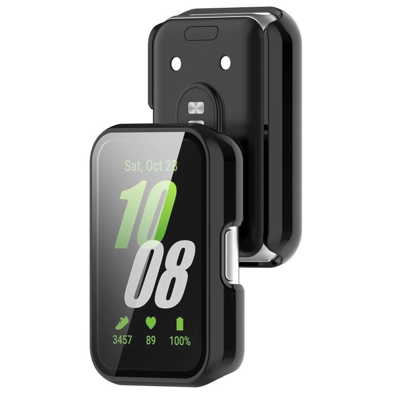 For Samsung Galaxy Fit 3 SM-R390 PC + Tempered Glass Film Integrated Watch Protective Case(Bright Black)
